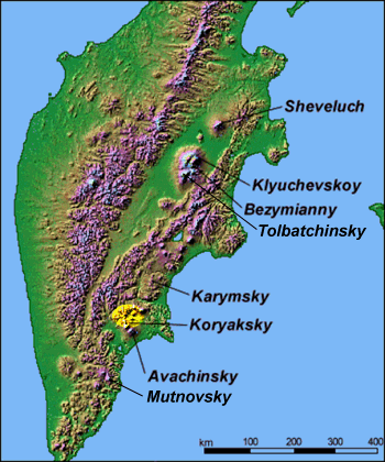 Wanderwegen erstreckt. Die vier grössten Vulkane sind: Koryaksky (3470