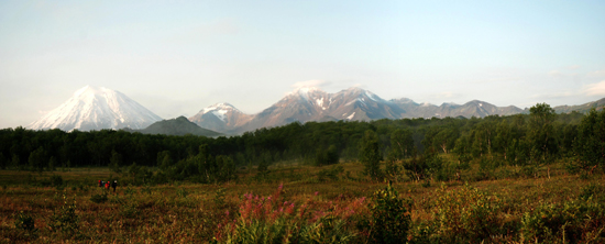 Der Nalychevo-Naturpark ist ein ganz besonderes Landschaftserlebnis mit Wiesen aus Hochstauden, Birkenwald und Tundra mit einigen hohen Vulkanen als Kulisse.