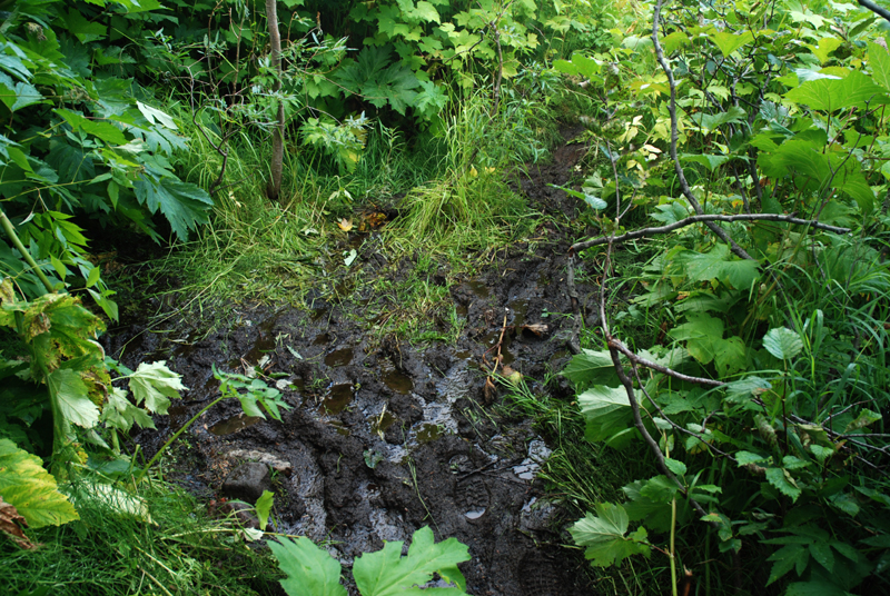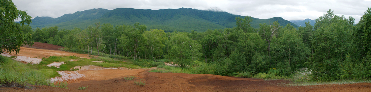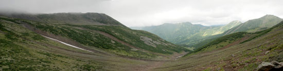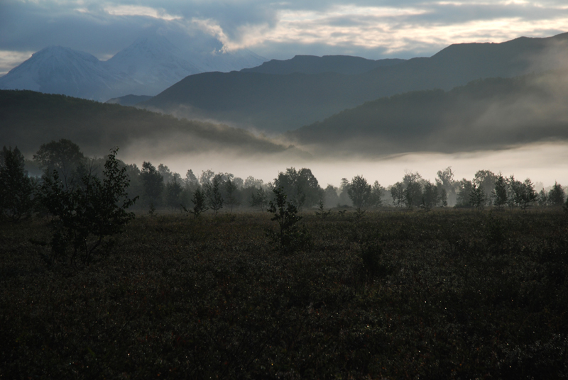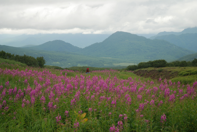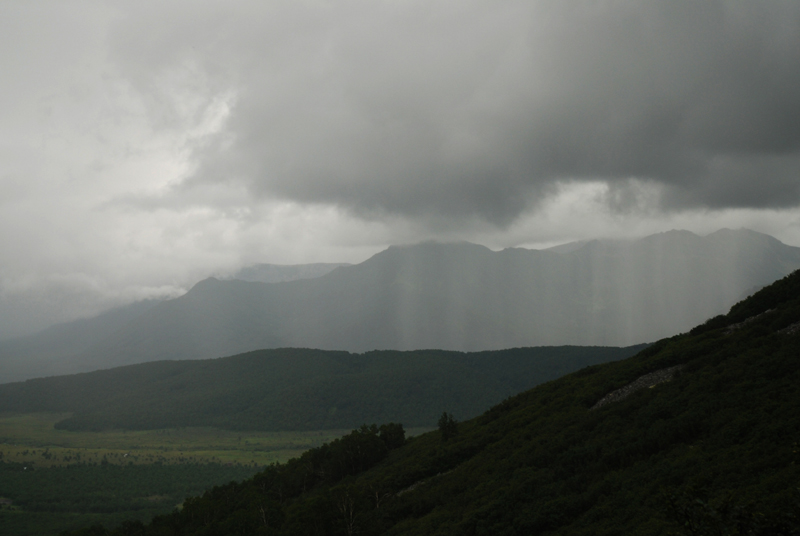 Der Tag beginnt mit wolkenlosem Wetter. Als wir jedoch den Pass Pinachevskij (1160 m) erreichen, werden wir auf der anderen Seite wieder durch Regenwolken begrüsst. Bis wir die 15 km bis Nalychevo geschafft haben, sind wir abermalls vollkommen nass.