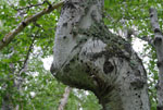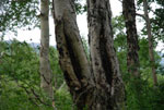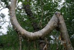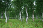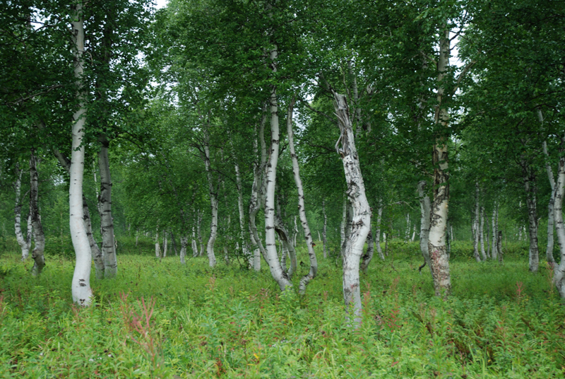 Die Wanderung zu den Mineralquellen Krajevedtscheskie führt durch Steinbirkenwald. Die Birken haben teilweise skurrilen Wuchs, der bedingt wird durch Verletzungen der jungen Bäume nach Schneebruch.