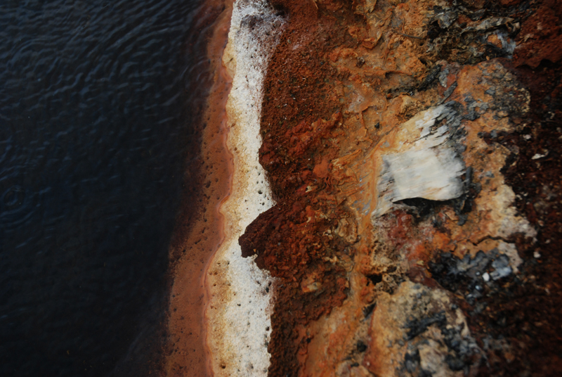 Wasser quillt. Die im Wasser gelösten Mineralien lagern sich zu bunten
