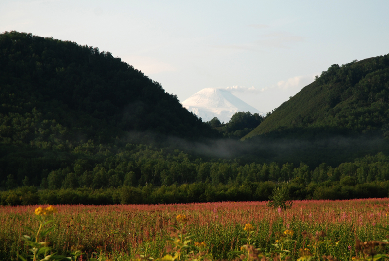 freie Sicht auf Dzendzur und Shupanova, sowie Koryaksky und Avachinsky. |
